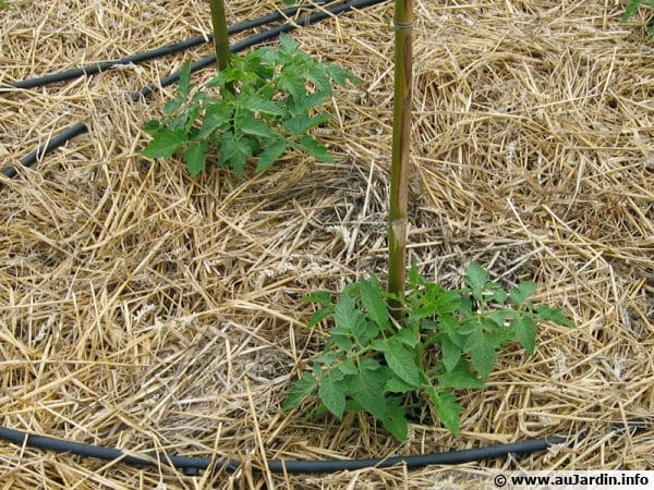 Pailler ses plants de tomate est une précaution très utile. La paille va protéger le pied de la plante en limitant l’apparition de « mauvaises herbes » et maintenir une bonne humidité dans la terre même pendant les grosses chaleurs. Génial pour limiter les arrosages en plein été !